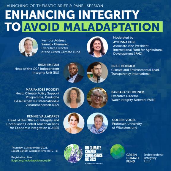 Adaptation projects to address climate change is an immense undertaking, and investment is critical. However, a serious cause for concern is corruption and integrity failures; including maladaptation in project selection, design and implementation. Integrity failure is only one aspect undermining the effectiveness of climate funds. Poorly designed projects also have a sinister side: maladaptation, which directly affects populations, and with potentially immense impacts. Maladaptation stems from adaptation actions that backfire, increase vulnerability rather than decrease it, and undermine the intended objective. Unfortunately, many areas needing climate finance are at high risk of corruption and integrity failures, and often impact the most vulnerable the hardest, leading to maladaptation. The challenge of improving integrity and institutionalizing anti-corruption measures, thus limiting maladaptation, is not insurmountable. This session highlights the importance of integrity measures to avoid the maladaptation trap.